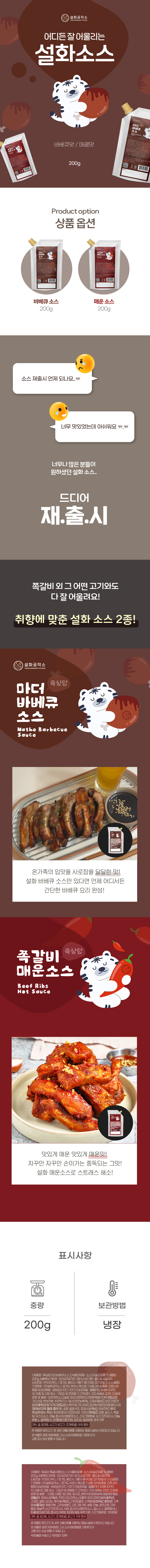 설화공작소 설화소스 200g 2종 바베큐맛 매운맛